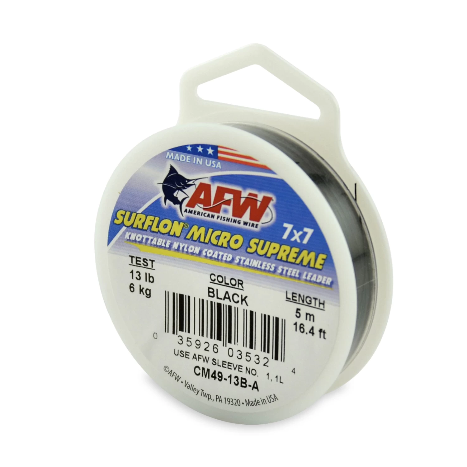49 individual stranded stainless steel wires coated with flexible clear nylon. Ties like mono with the strength and bite resistance of stainless steel
