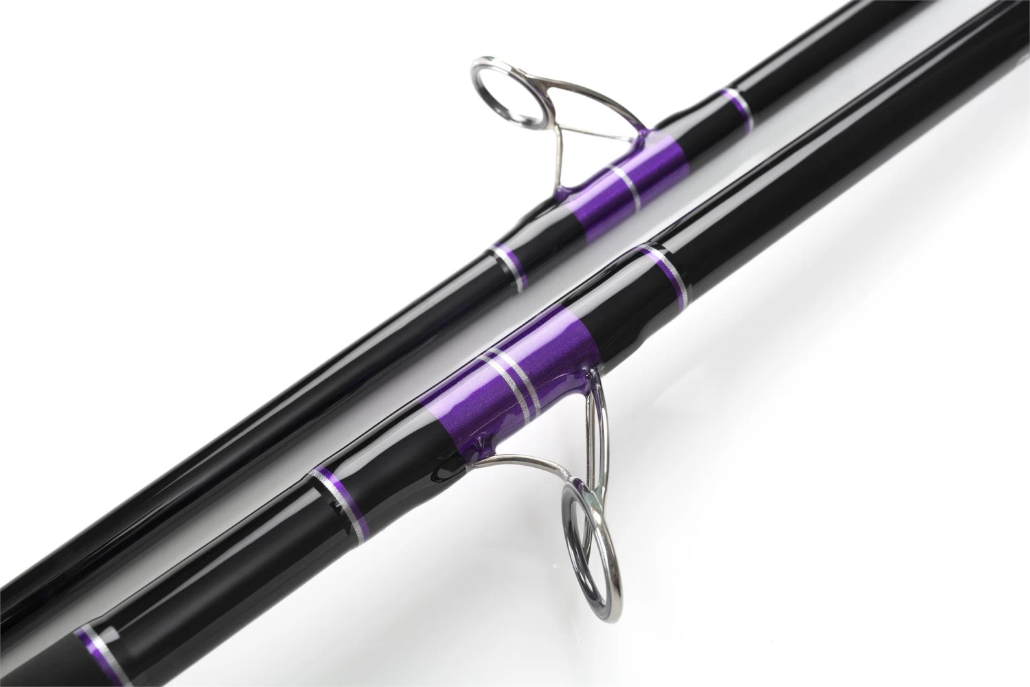 - Factory Finish:Titanium K Guides configured for multiplier and fixed spool Tied in purple metallic, silver inlays and tips. Jet black intermediates.
