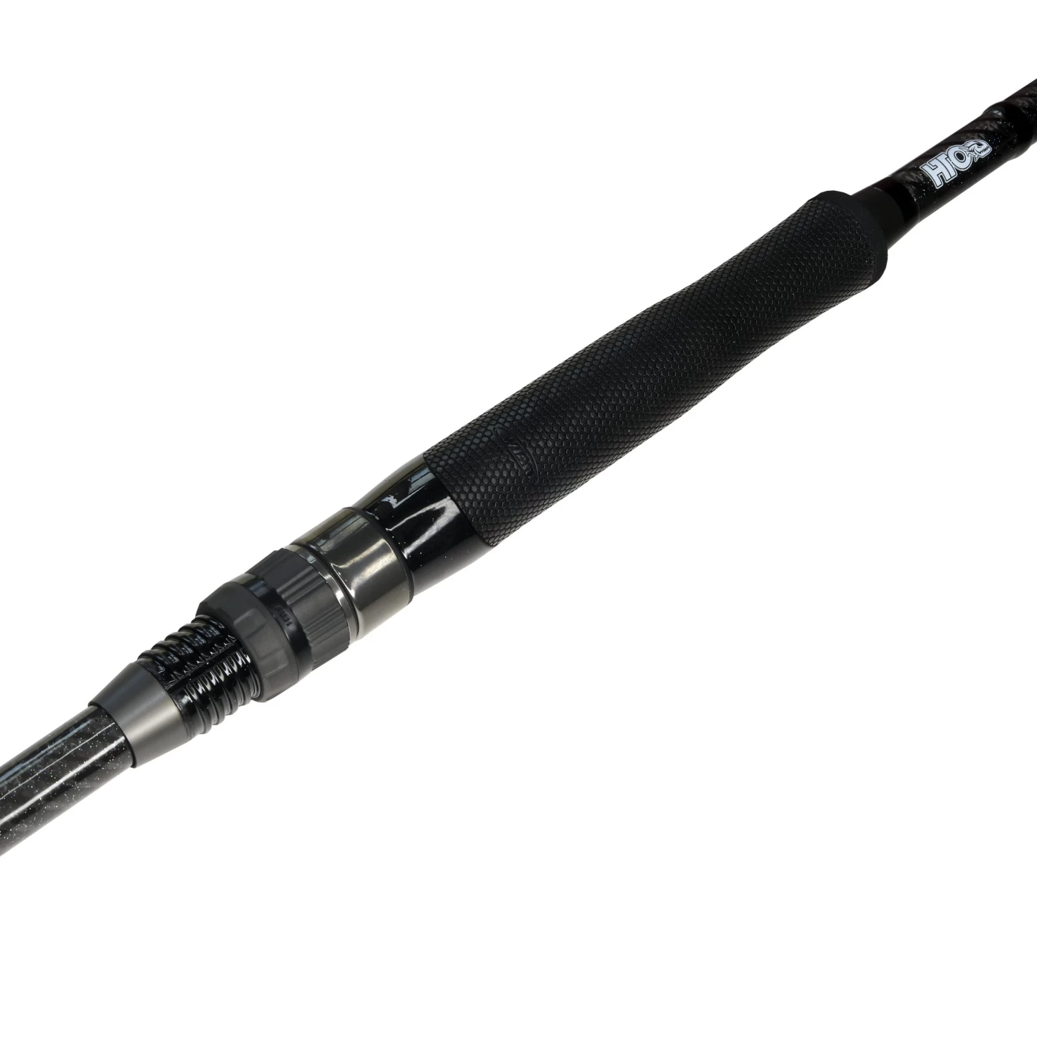 A rod with lofty ambitions, it takes its name from the N70 Nebula, a luminous bubble of interstellar gas, a birthplace of powerful new stars. These massive formations of gas profoundly affect their environment, leaving their mark on the future for generations to come. A rod named after such an immense and powerful entity needs to be special, and it is. This is the very best bass blank HTO have ever built, we believe it to be one of the best bass rods ever made for the UK and European bass angler. The price of this rod was the very last thing we had in our minds when we set out on the N70 journey. We wanted to create the very best bass lure rod we could, with zero compromise. The blank itself is built from 40ton Carbon from renowned Japanese manufacturer, Mitsubishi. This carbon base is coated in M4 resin which adds incredible strength while retaining the highest elasticity and sensitivity, creating a blank wall that is 100 times higher in tensile strength compared to steel of the same thickness. Finally a layer of 45 degree helical carbon tape is wrapped around the blank giving it an extra layer of protection and a unique spiral look that doesn’t compromise the blanks performance. This building process makes the rod featherlight, crisp and with an extra fast action that will punch lures to distance with pinpoint accuracy while maintaining the very best action for working lures to their highest levels of efficiency and attraction. Fitted to the blank are Fuji Titanium Framed Torzite 2 K spinning guides. We chose these guides as they are super light to fit in with the featherweight blank, they are also highly efficient. Their design dramatically reduces line twist and gives the line a much more direct motion of travel through the guides for more efficient and accurate casting. They are suitable for both braid, fluorocarbon and monofilament. A Fuji VSS reel seat completes the rod, with a Winn grip handle that is soft to the touch, provides excellent grip and is light.