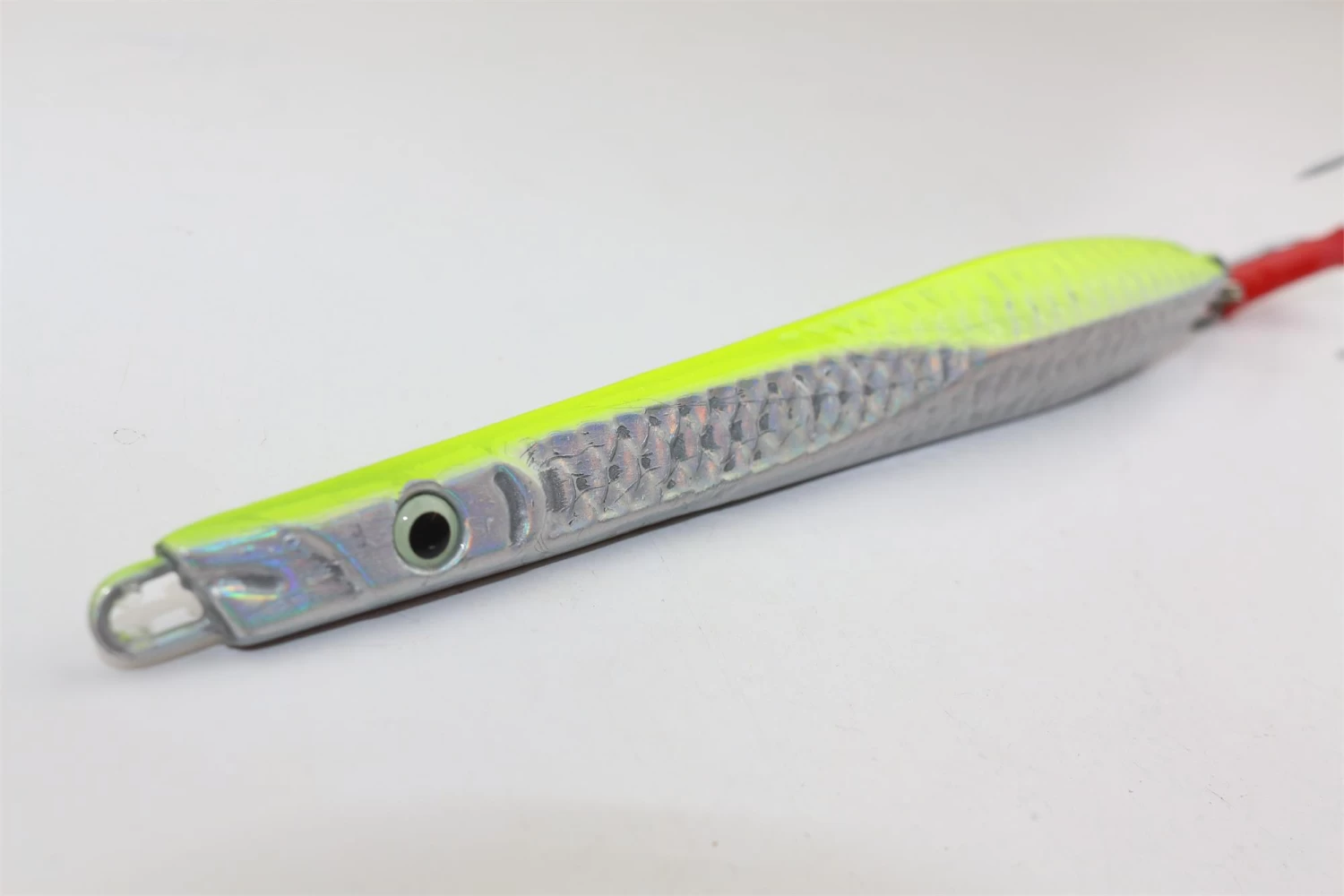 Superb deep diving pilk with seductive swimming actions. Works great for big cod, coalfish, halibut and other species. Proven colours in combination with metallic flash produce monster strikes. Unique design.