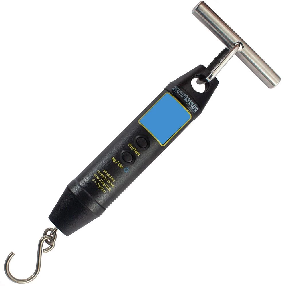 ReubenHeaton Sportscale Designed around a tubular balance silhouette, the ultra compact 9000 Series utilises the same advanced software developed for the highly successful 7000 Series Digital Scale. Ultra compact but featuring a large display so weights can easily be seen. Stainless steel hook and hanging pointsLarge tare/zero facility to 15% of capacityFull overload protectionFull after scales servicing & calibration facilities25g/1oz resolutionComes complete with protective pouch