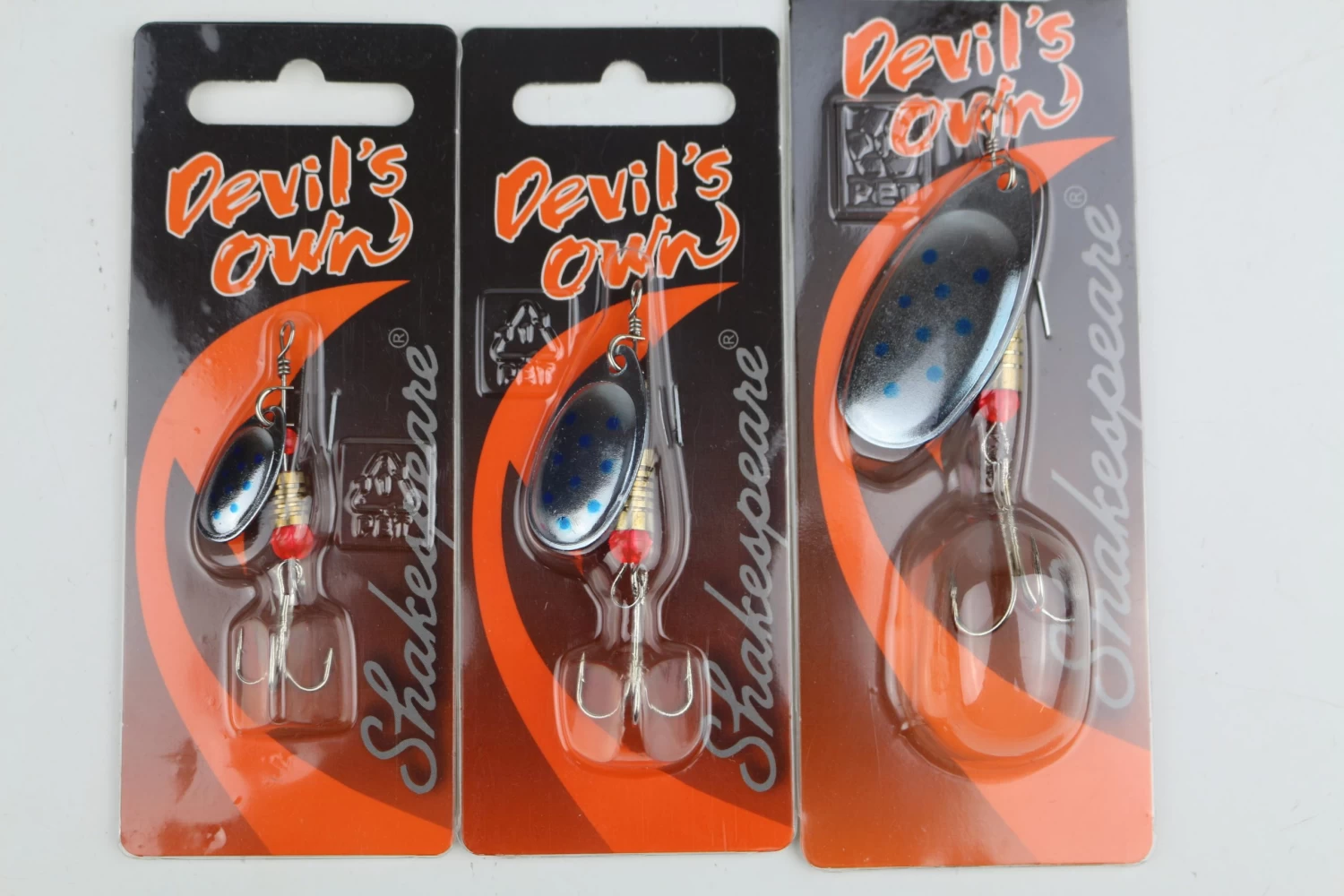 The Shakespeare Devils Own Spinners have been designed to show a lot of visual attraction and vibration, making them especially attractive for a range of species. With a revolving spoons that works even on a slow retrieve, you should be expecting to catch Pike, Perch, Zander, Trout and Mackerel.