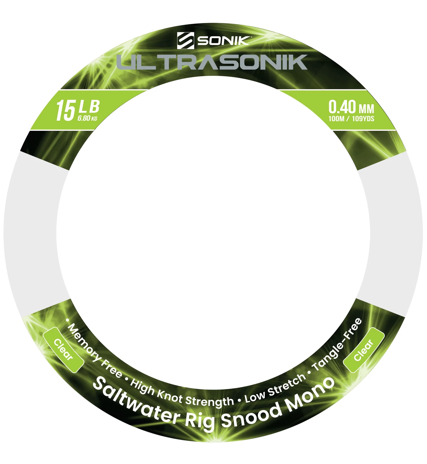 Ultrasonik Snood Mono is the ideal complement to Ultrasonik Saltwater Monofilament. Being memory free it offers a tangle-free presentation and high knot strength even when wet. Ultrasonik Snood Mono stays perfectly straight after stretching and being clear in colour is ideal for both the shore and boat angler.