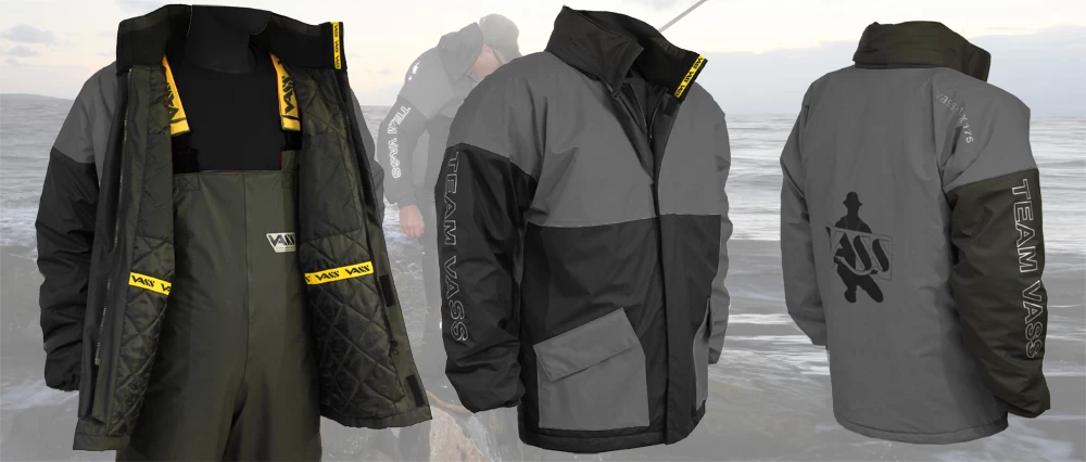 Vass are pleased to introduce the new Jacket version of the successful ‘Team Vass 175’ winter lined smock. The front includes a ‘double front storm flap with gutter’ which covers the high quality ‘YYK full zipper’. The padded winter lining is very warm and promotes internal air circulation for extra comfort. It’s unusually lightweight & flexible therefore not your usual bulky winter jacket! The outer design includes hand pockets, storm hood with clear peak, adjustable lower hem, reflective print for safety when fishing at night and the new improved ‘Vass-Tex 176 material’ which now has even more performance built in to its spec!
