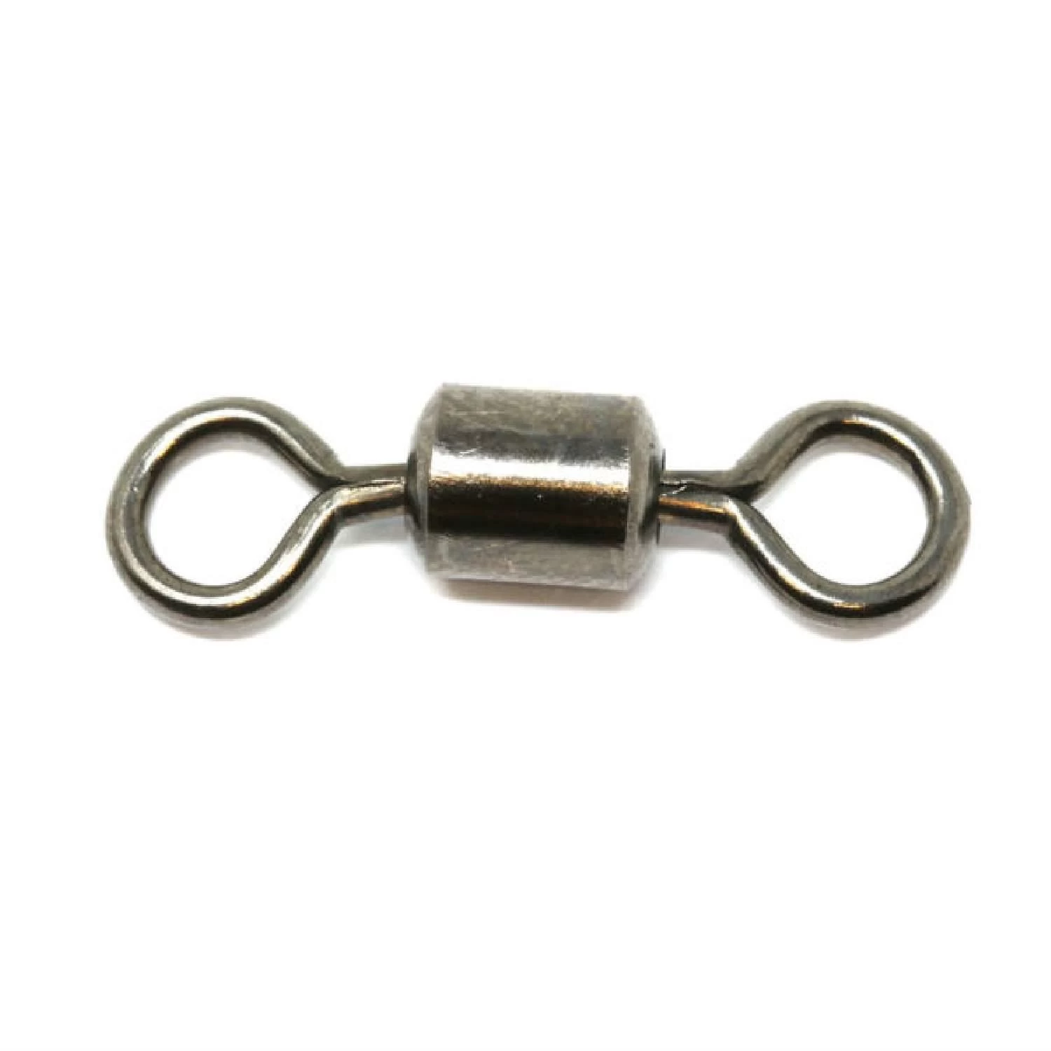 A compact swivel where the tag ends of the eyes are encased in a cylindrical central body that provides strength and reduces the size of the swivel when compared to a standard barrel swivel. The compact central cylinder provides more efficient rotation when under heavy pressure reducing line twist and tangles. A reliable choice for attaching hook lengths and given its strength, for attaching rigs when casting heavy lead weights.