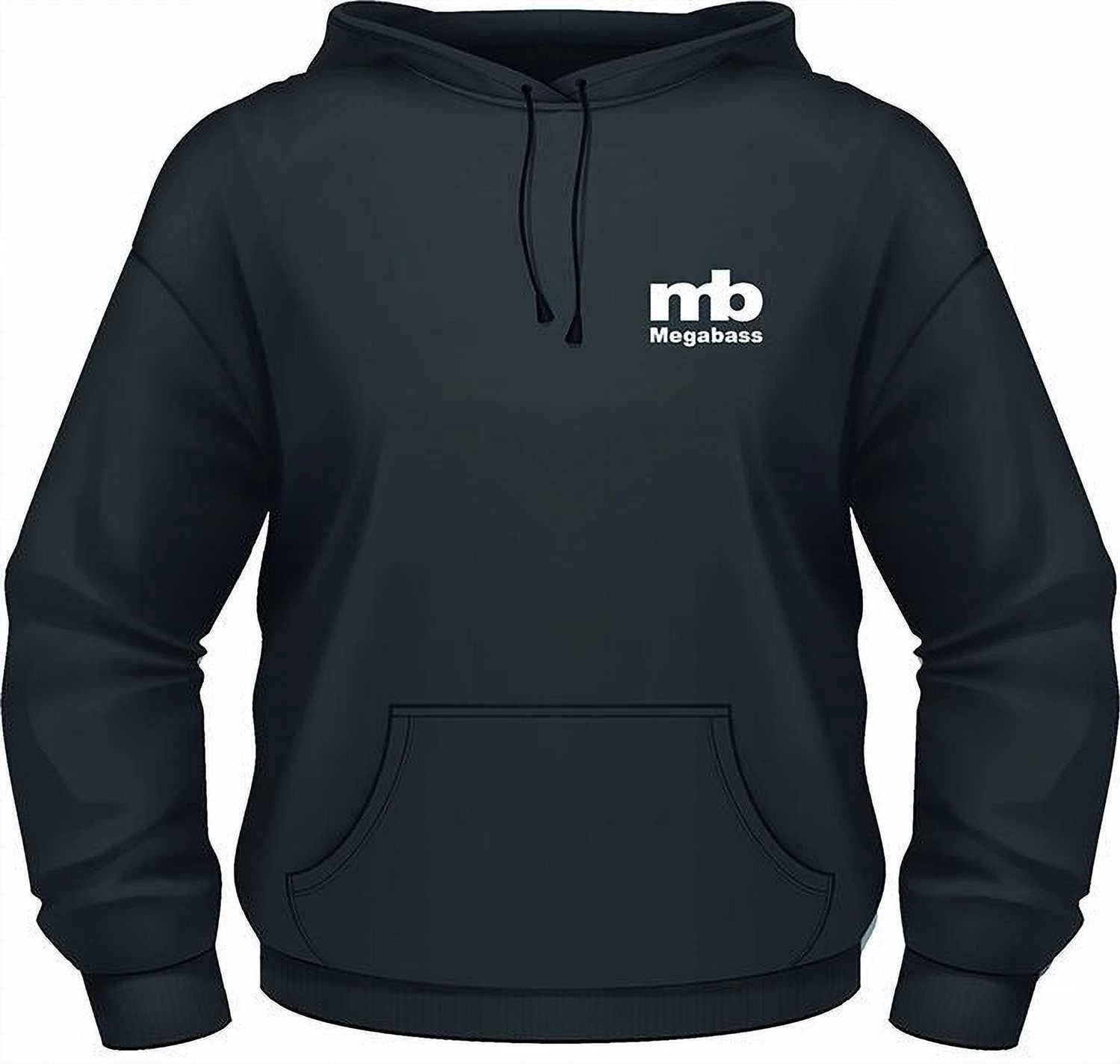 Megabass hoodie with the mb logo on the heart and a large “mb professional baits” logo centered on the back.