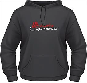 Stylish Ultimate Fishing hoodie in black with the logo centred on the front
