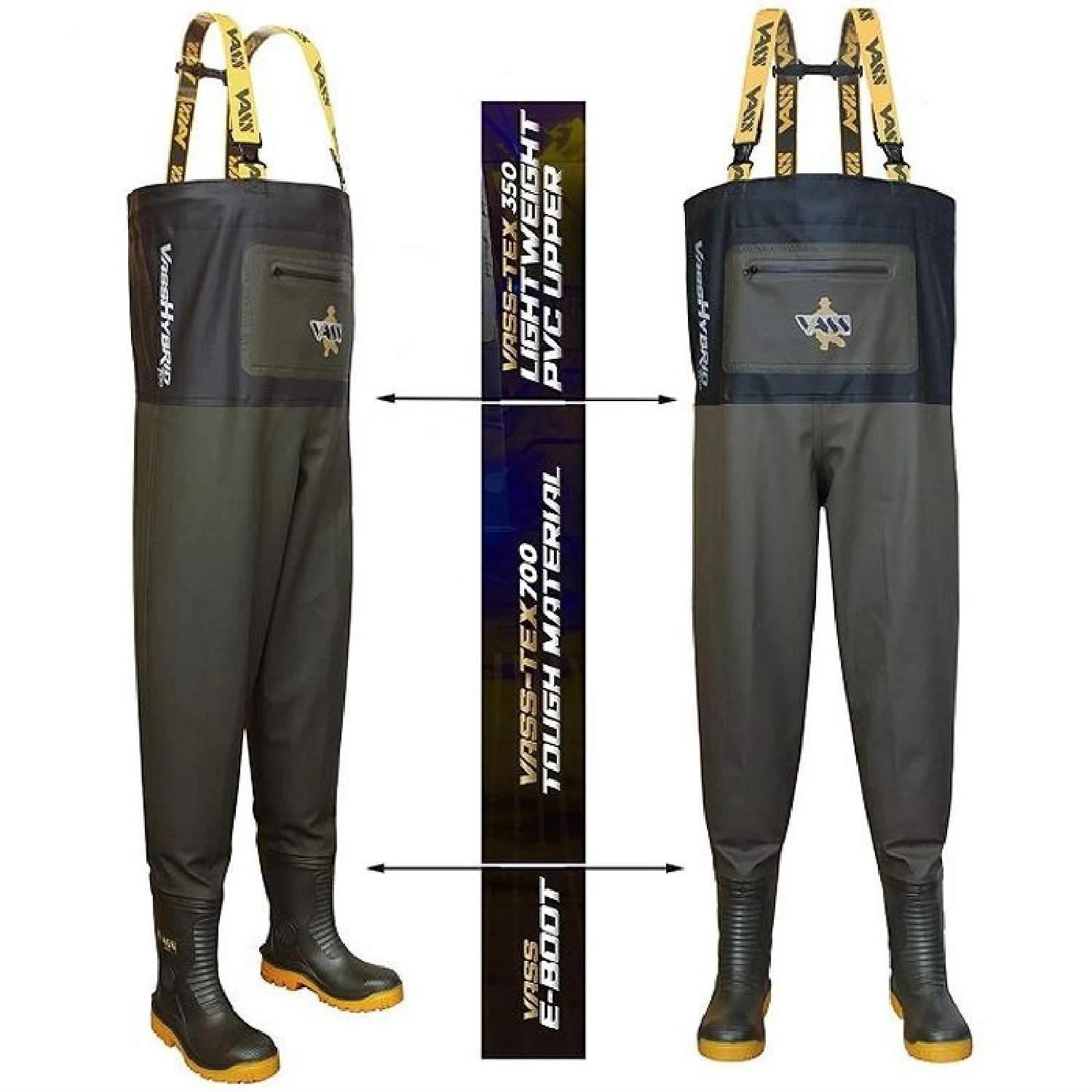 The Vass Hybrid 700 Chest Waders combine the Tough Vass-Tex 700 material on the lower section with the lightweight Vass-Tex 350 material upper to reduce weight and increase flexibility. This combination offers anglers the best of both worlds without compromise!